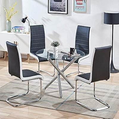 5 out of 5 stars. 4.1 out of 5 stars. Modern dining chairs set of 8, dining room chairs with faux leather padded seat back in checkered pattern and sled chrome legs, kitchen chairs for dining room,kitchen, living room, white chairs. 4.7 out of 5 stars. Black dining room chairs (set of 8) average rating: